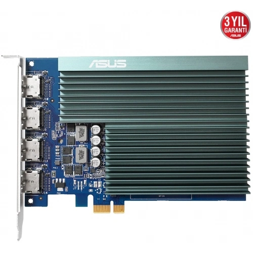 Asus GeForce GT 7304 HDMI yuvası ve pasif soğutması ile birlikte ASUS GeForce GT 730, çoklu monitör kullanımını ve sessiz çalışmayı aktif hale getiriyor.