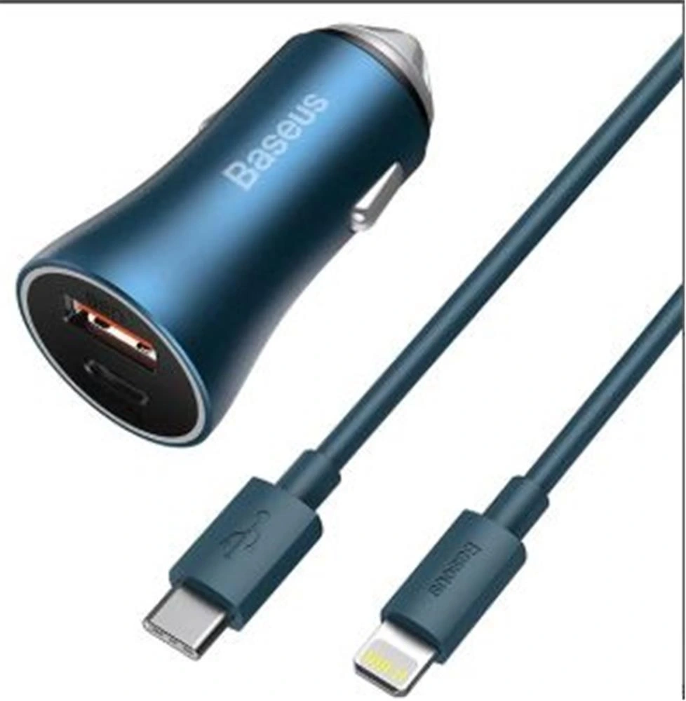 Baseus TZCCJD-03 Golden Contactor Pro Lightning Kablolu Araç Şarj Seti Mavi