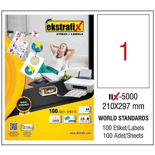 Ekstrafix Laser Etiket 100 YP 210x297 Laser-Copy-Inkjet FİX-5000