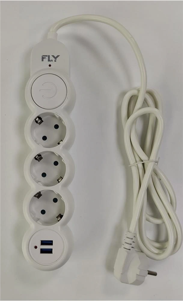 Fly 3393-01 3lü 2mt 2.1a Anahtarlı 2usb Şarj Çıkışlı Akım Korumalı 2500w