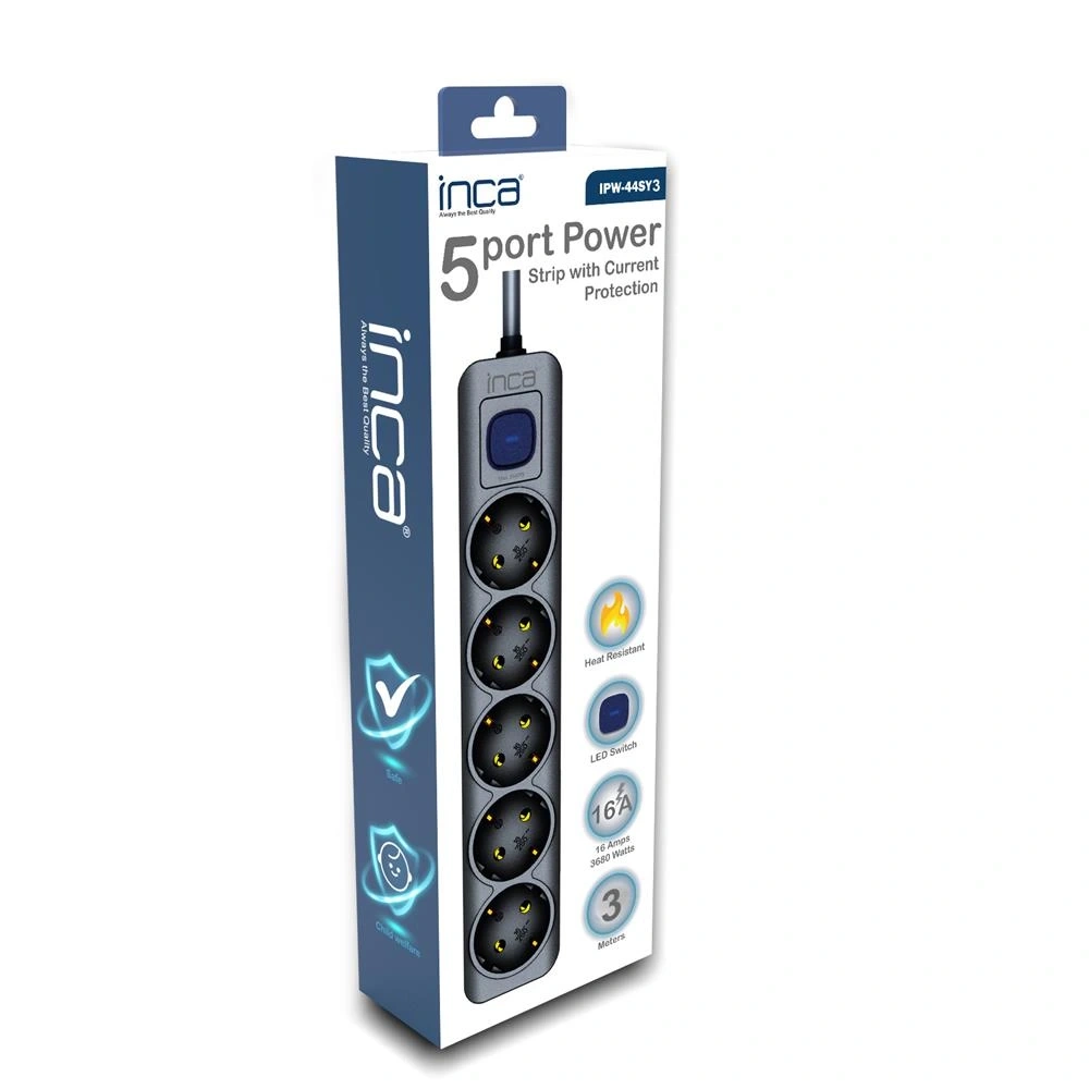 INCA IPW-44SY3 4lü 3mt Siyah Yeşil Akım Korumalı Priz