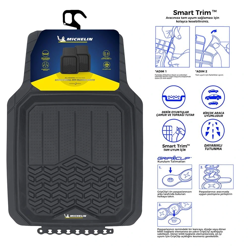 • Michelin MC34594 Tüm Araçlara Uyumlu 2 Parça Üniversal 3D Havuzlu Oto Paspas