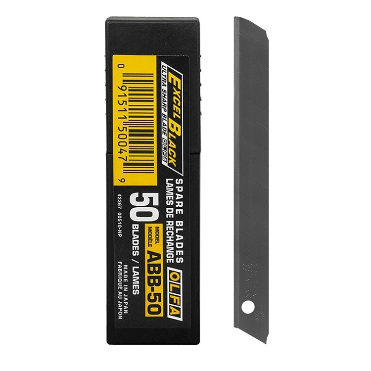 OLFA ABB-50 siyah maket bıçağı uçları, standart gümüş bıçaklara göre daha keskin olması için özel olarak tasarlanmıştır. Ultra Sharp Black Blade teknolojisi sayesinde daha güçlü ve hassas kesim performansı sunar.