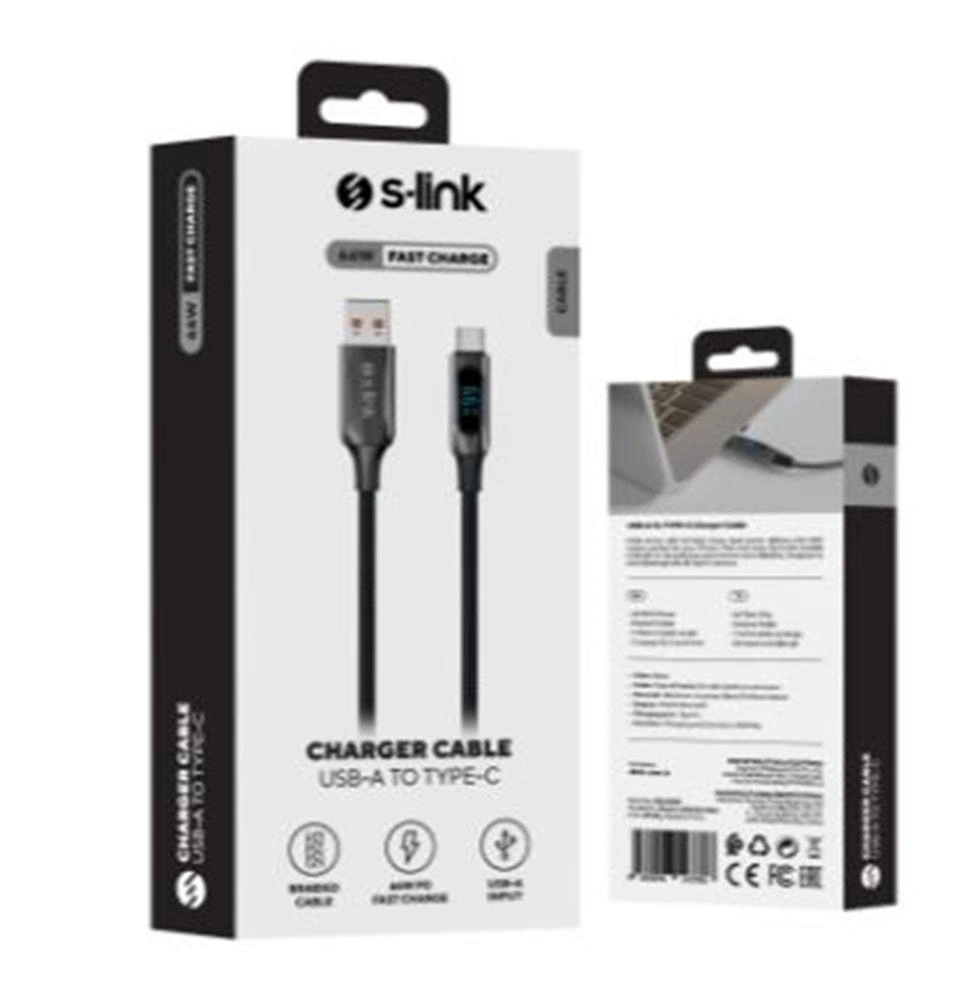 S-link Armor Led Uc-066 66w 1m Usb To Type-c Pd Örgülü Led Başlıklı Siyah Hızlı Şarj Kablosu