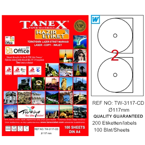 Tanex Cd Etiketi Laser-copy-ınkjet 100 Yp 117 Mm Tw-3117