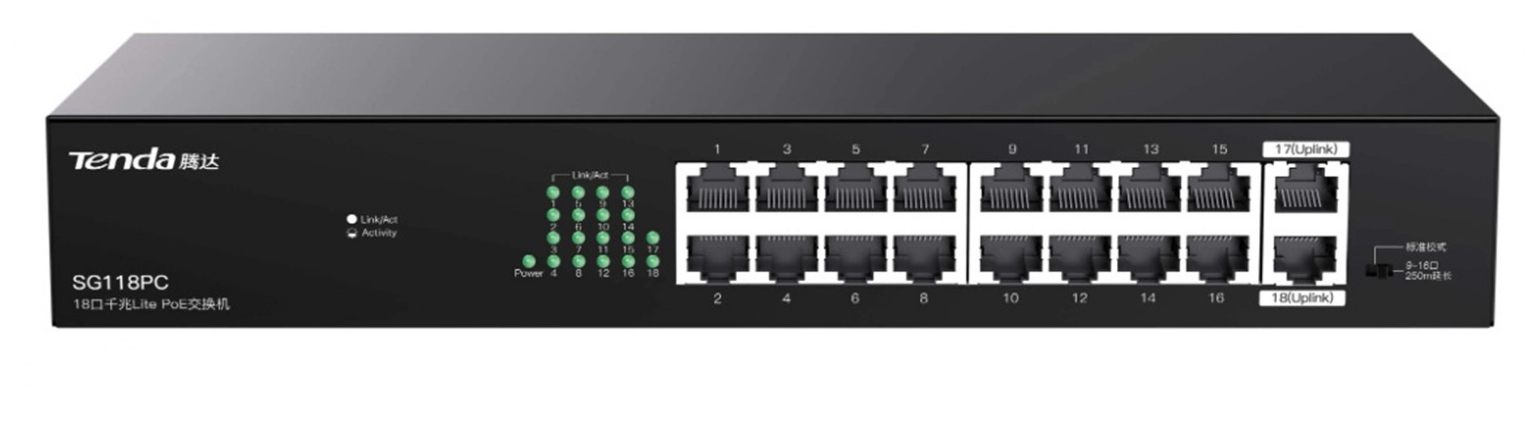 Tenda Sg118pc Sg118pc 18 Port Gigabit Poe Switch 100-100-1000 167w