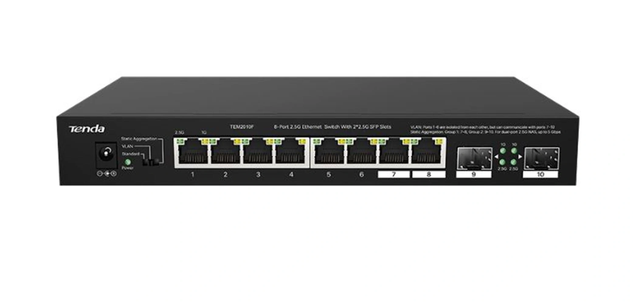 Tenda TEM2010F 8 Port 100-1000-2500 Mbps + 2 Port SFP Switch Çelik Kasa Rack Mount
